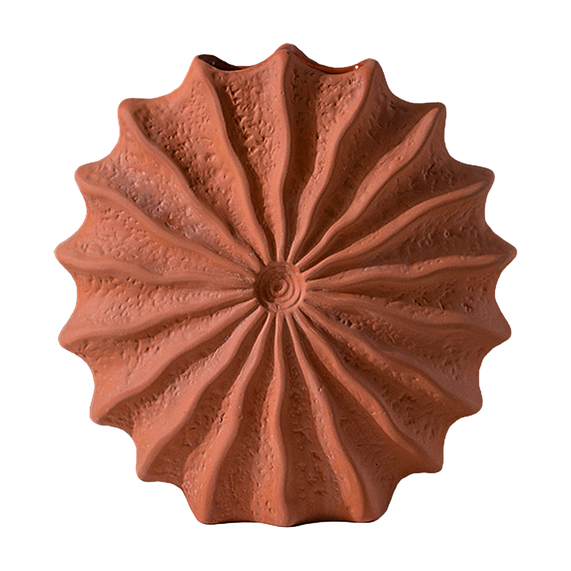 Decoratieve keramieken vaas met een golvende, sculpturale vorm en matte textuur. Door het handgemaakte karakter kan elk stuk licht afwijken in structuur en kleur.