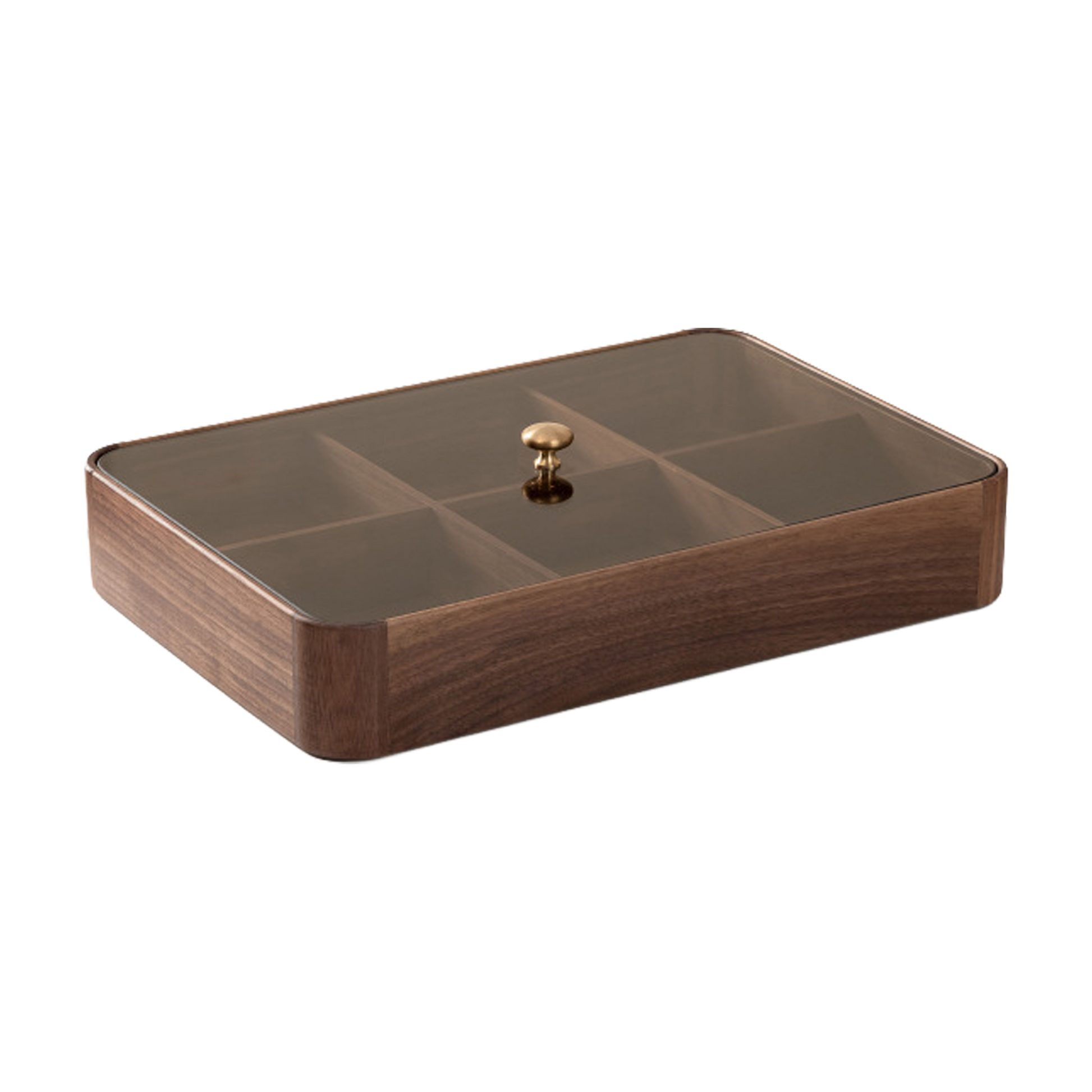 De LUMORA-serie verenigt warm walnotenhout, zacht rookglas en subtiel messing tot een tijdloze, serene blikvanger. Elk stuk is handgemaakt, waardoor de houtnerf per item een eigen karakter krijgt. Het rookglazen deksel filtert het licht op een delicate manier, terwijl de messing knop een verfijnd glansaccent toevoegt. Functioneel én decoratief — een stijlvolle manier om kleine items georganiseerd en mooi gepresenteerd te houden.